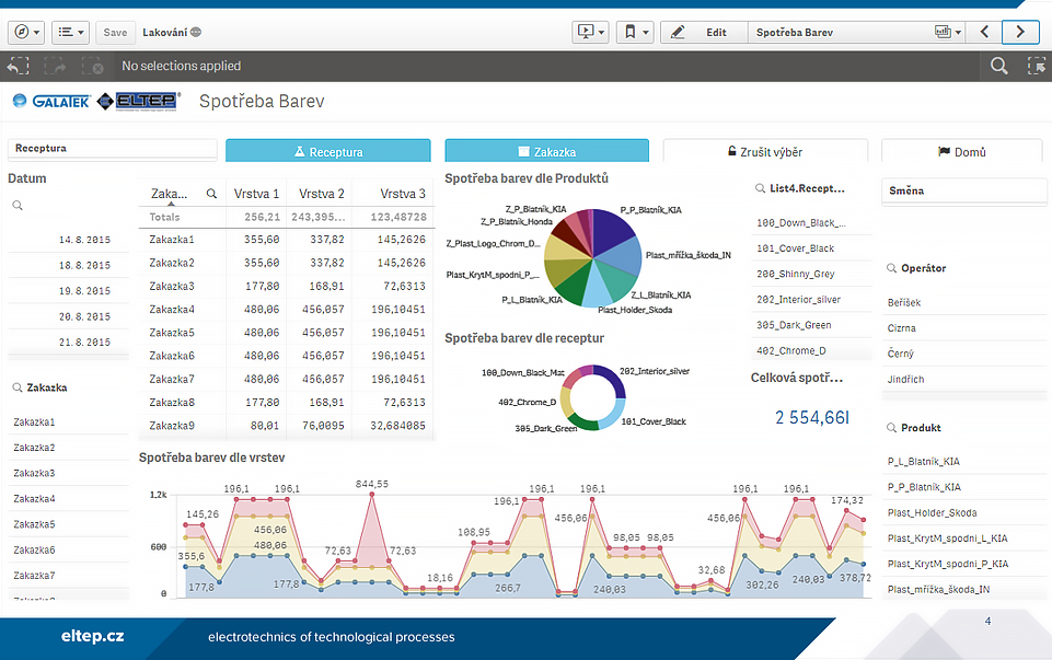 Součástí lakovacích linek je standardně i integrace lakovací aplikace a obsluha barvové kuchyně. Do technologie a řídicího systému převážně integrujeme autonomní aplikační techniku jedno komponentních „1k“ nebo dvou komponentntních „2k“ barev a nátěrových hmot. Našim cílem je zajist komplexní přehled a správu procesů, receptur, materiálů a tím zajistit komplexní přehled nad technologii.