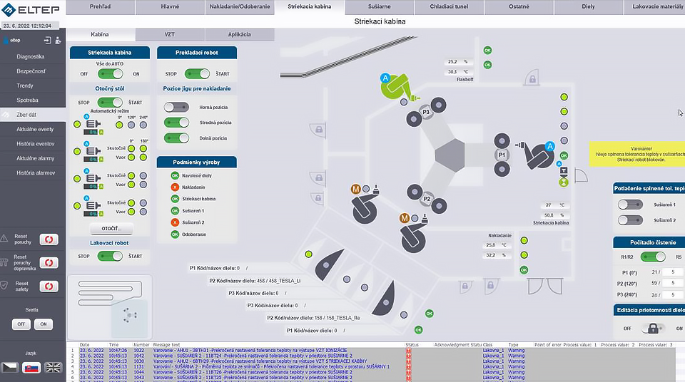 Zajišťujeme plnou integraci lakovacích linek do stávající IT/OT infrastruktury zákazníka propojení s MES, ERP nebo skladovými systémy. Díky Industry 4.0 konektivitě jsou data z výroby dostupná v reálném čase, což umožňuje prediktivní údržbu, optimalizaci procesů a sledování OEE. Komunikaci řešíme přes standardní průmyslové protokoly (OPC UA, PROFINET, Modbus a další).